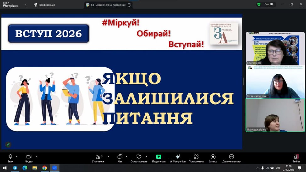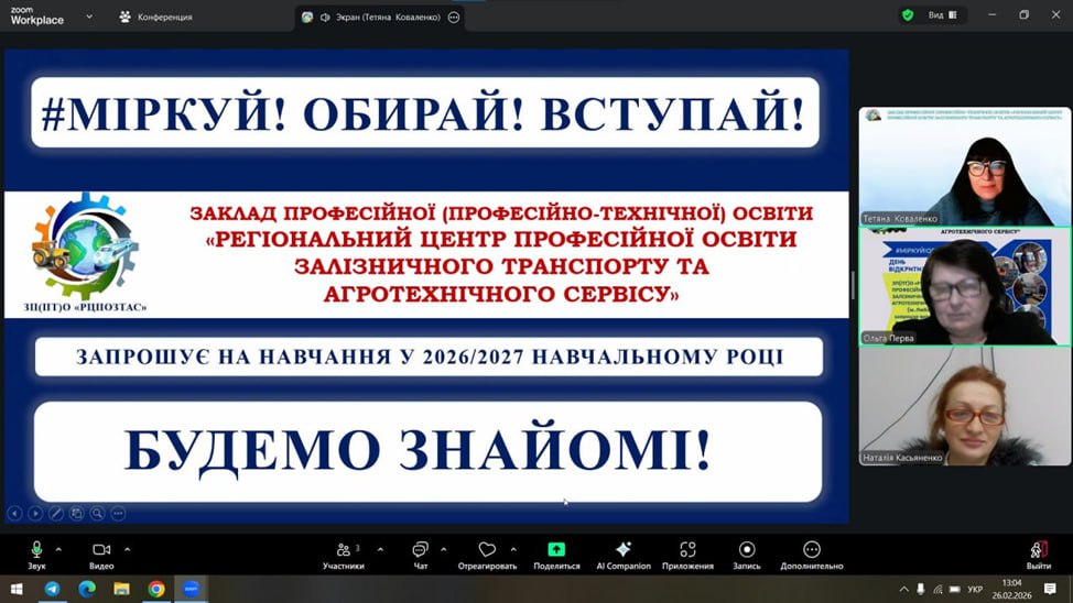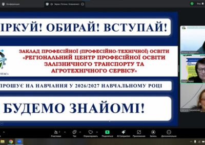 26-27 лютого представниці нашого центру — Тетяна КОВАЛЕНКО та Ольга ПЕРВА — провели профорієнтаційну онлайн-зустріч із здобувачами освіти 9-х та 11-х класів Комунального закладу “Коротичанський ліцей Пісочинської селищної ради Харківського району Харківської області”. Педагоги презентували захоплюючий світ професій, які можна опанувати в нашому закладі, акцентувавши увагу на унікальних спеціальностях, сучасних умовах навчання та реальних перспективах працевлаштування для майбутніх випускників.