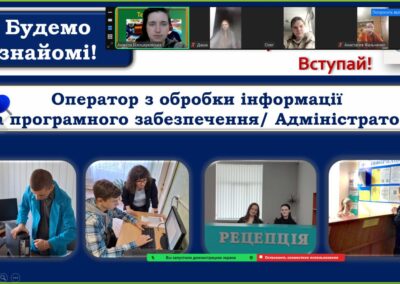03.03.2025 в межах профорієнтаційної роботи учні 9-го класу Караванської гімназії Люботинської міської ради Харківської області стали учасниками зустрічі з представником ЗП(ПТ)О “Регіональний центр професійної освіти залізничного транспорту та агротехнічного сервісу” Анжелою БІЛОЦЕРКІВСЬКОЮ. Під час онлайн-заходу присутні переглянули презентацію закладу, ознайомилися з професіями, за якими здійснюється набір, а також з особливостями вступної кампанії 2025 року.