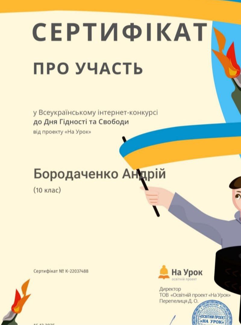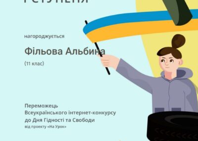 Успішно впорались з завданнями інтернет-конкурсу та отримали іменні сертифікати: Бородаченко Андрій, Демиденко Тимофій, Луговий Дмитро, Магеррамова Улькєр та Усов Єгор.