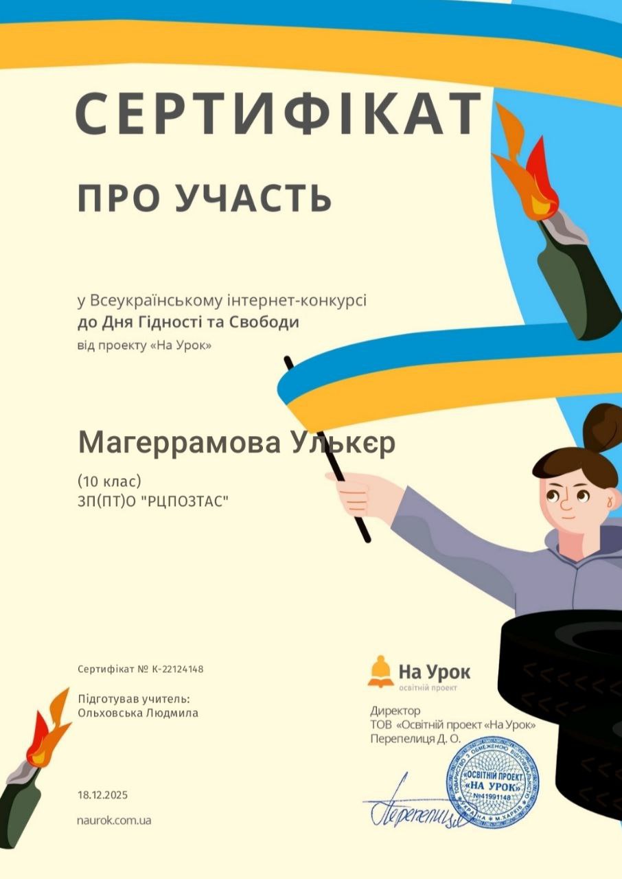 Переможцями Всеукраїнського інтернет-конкурсу до Дня Гідності та Свободи стали: