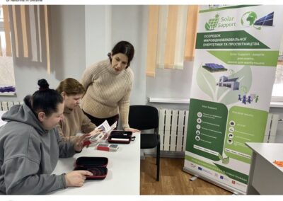 👉Проводимо просвітницькі зустрічі для ВПО про можливості малої відновлювальної енергетики та практичні заняття для тренерів, які вже опанували теоретичні засади програми «Інженер з монтажу СЕС» та отримали сертифікати.