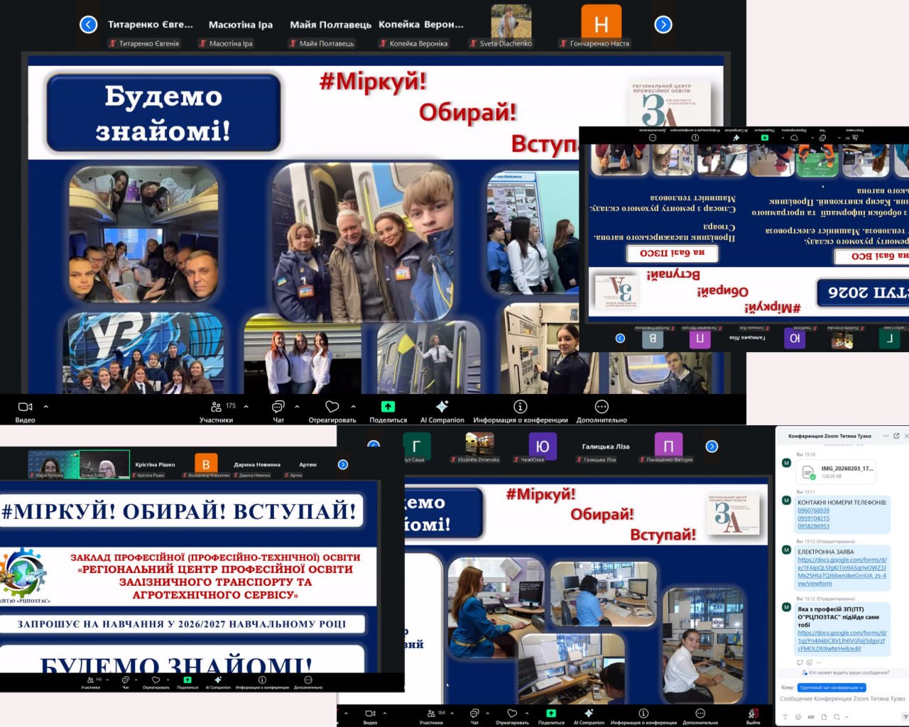 Під час зустрічі практичний психолог Тетяна ТУЗКО та соціальний педагог Марія ЧУНІХІНА ознайомили старшокласників із переліком професій, які можна здобути в нашому Центрі. Особливу увагу приділили залізничному напрямку: розповіли про специфіку роботи, умови праці та перспективи кар’єрного зростання.