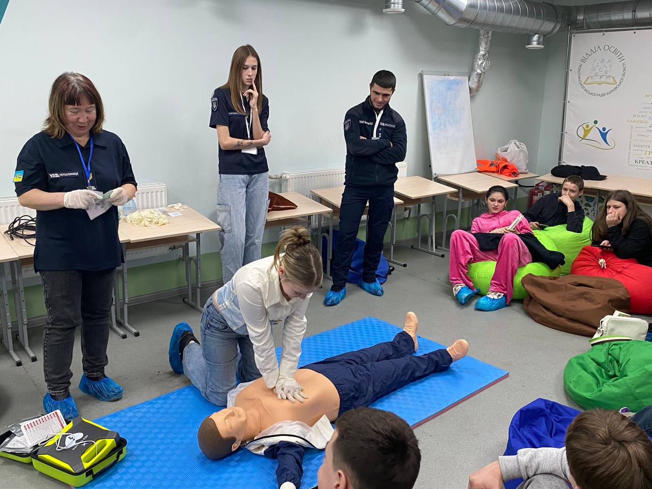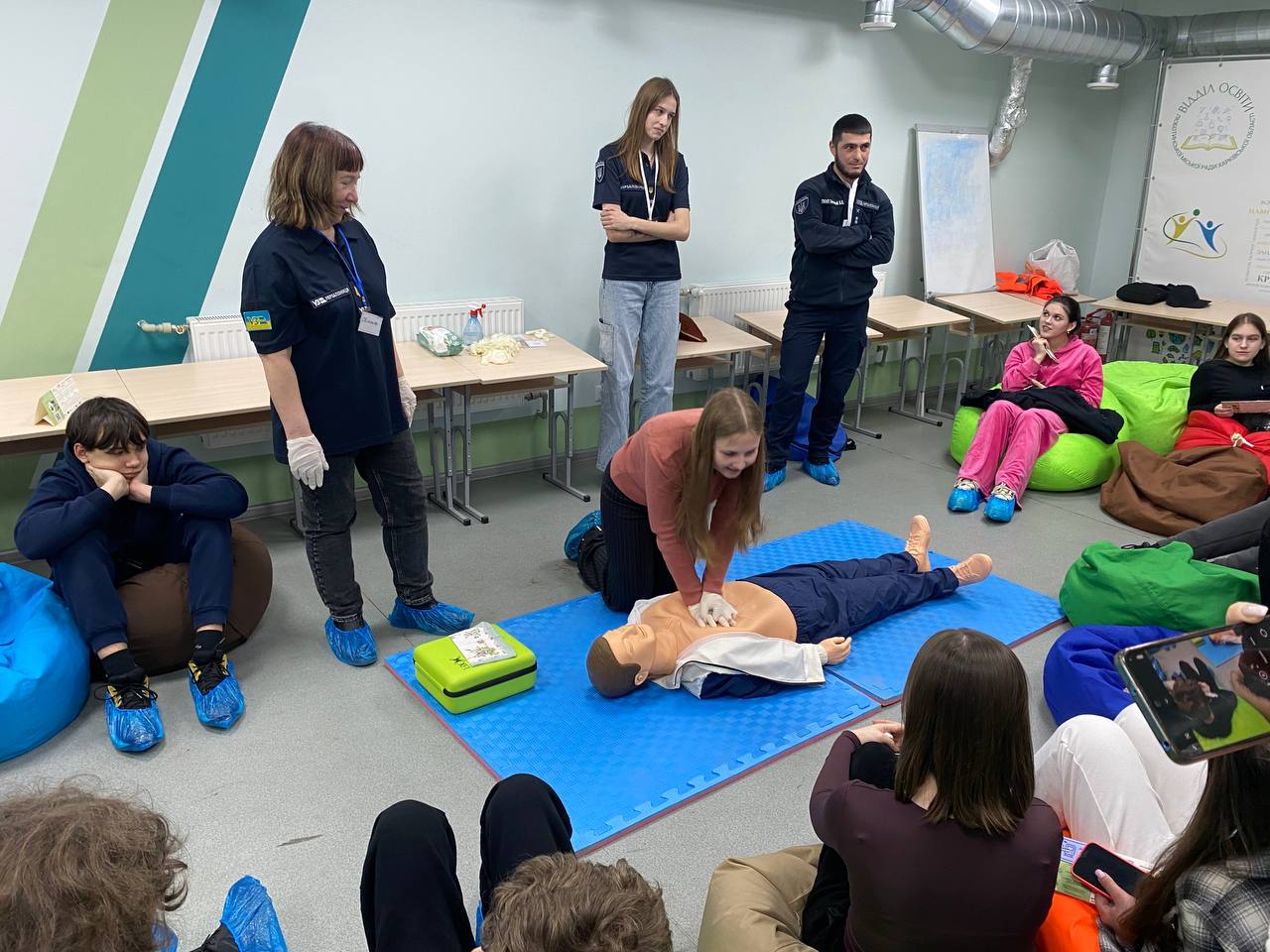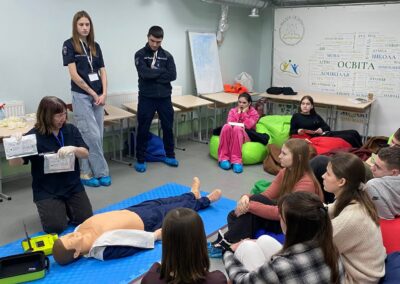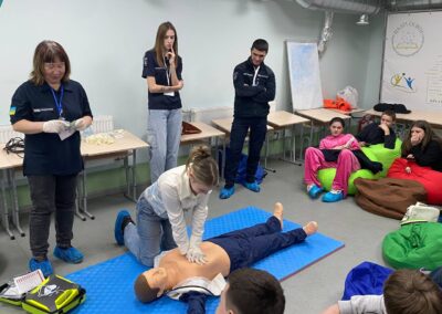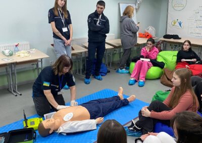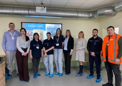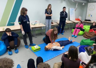 – працювали над практичним кейсом провідника пасажирського вагона — алгоритмом надання першої домедичної допомоги. Правила та базові навички надання допомоги учасникам демонструвала Світлана КАЛІНЕНКО.