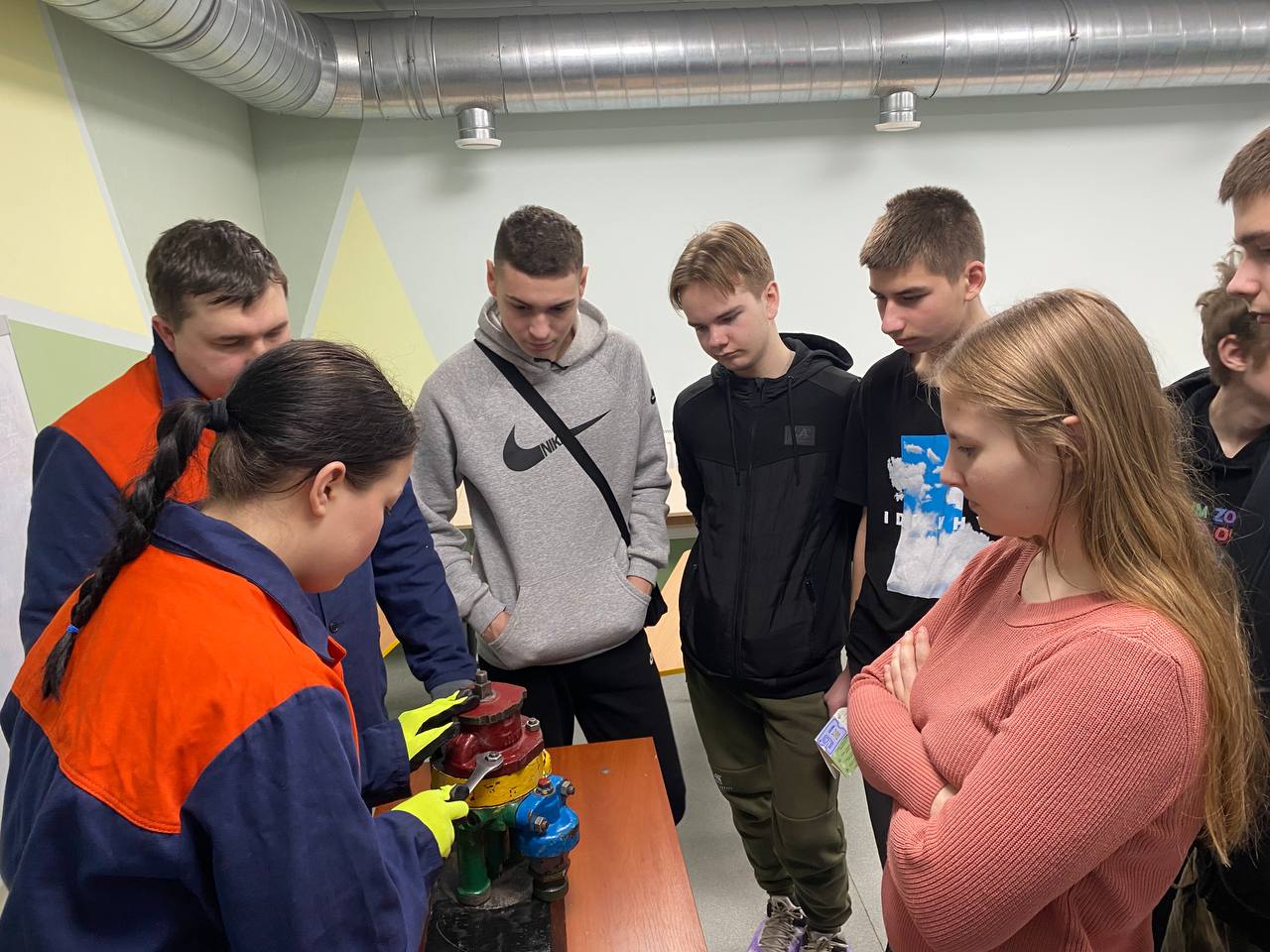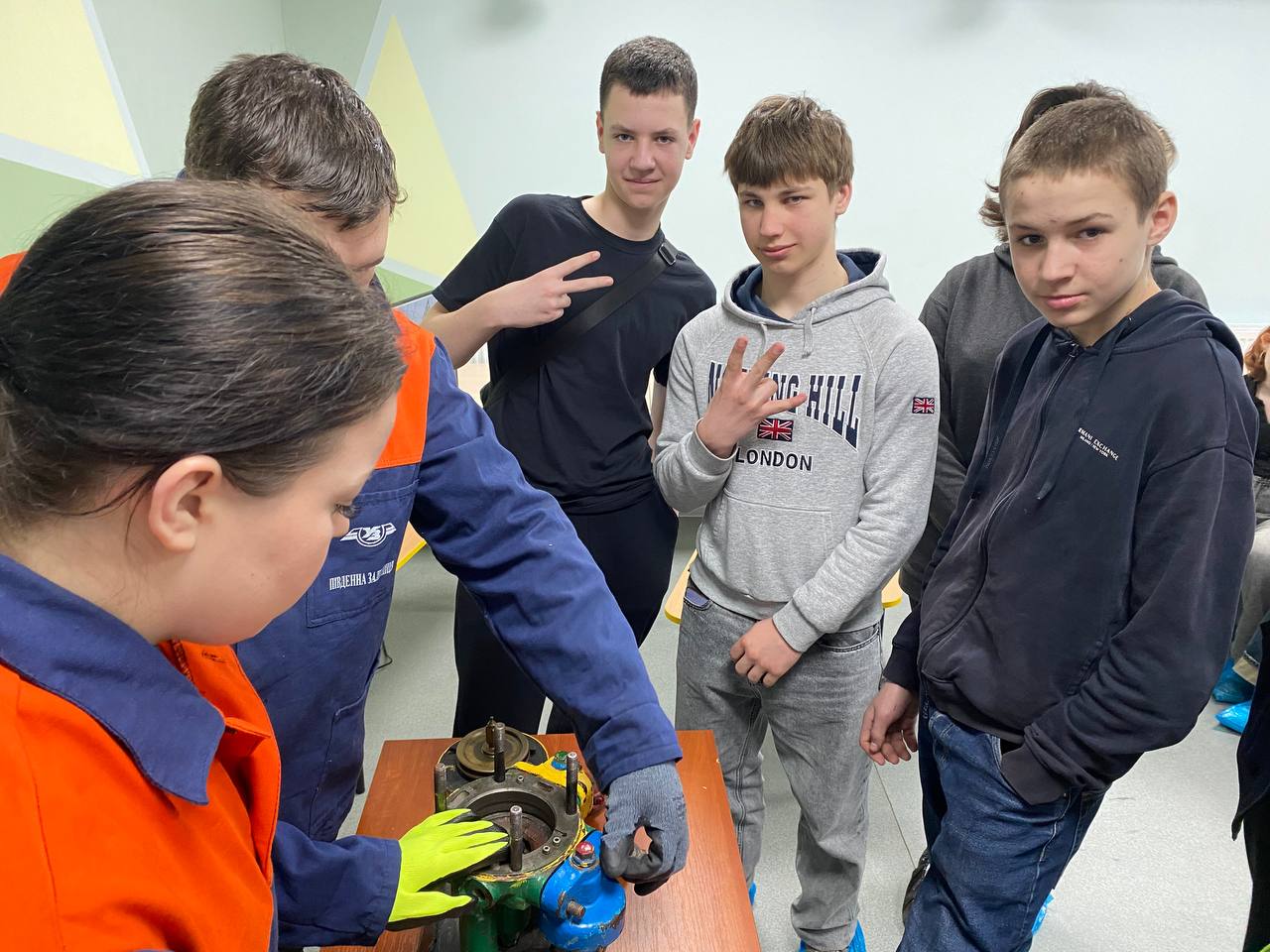 – разом зі студенткою нашого закладу, яка навчається за професією «Слюсар з ремонту рухомого складу. Машиніст тепловоза», розібрали кран машиніста та ознайомилися з елементами його конструкції;